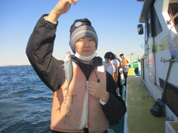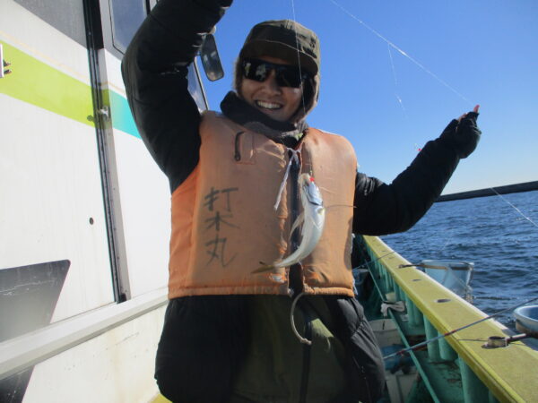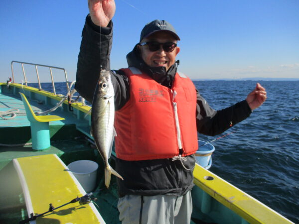 ※東風の凪で釣りが出来ました.潮流れボチボチあり、釣り始めから皆さんに釣れていました。今日は中アジの混じり良く、良型も釣れました。水温下がり、食い込みが遅いのでいつもより長めにアタリを見て、食わせてください。