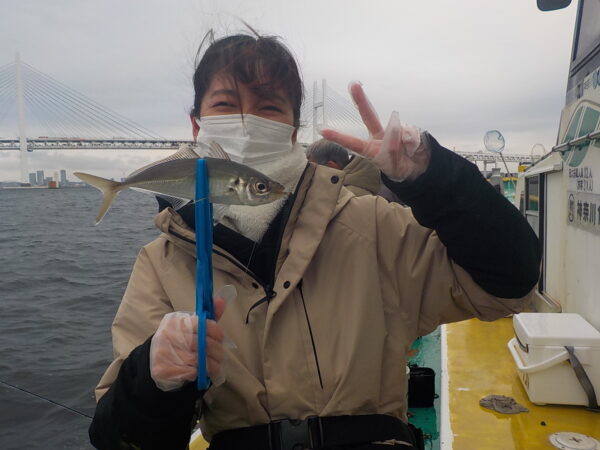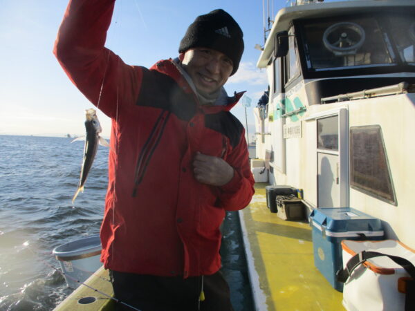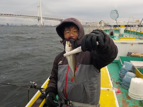 ※横浜沖を釣りました。北風が吹いていましたので、波の少ない所でつりました。ポツリ、ポツリと釣れて来る感じでした。下げ潮の潮が流れて来たらアジの喰いが良くなると思っていましたが、アジの喰いは相変わらずにポツリ、ポツリとアジの喰いでした。
