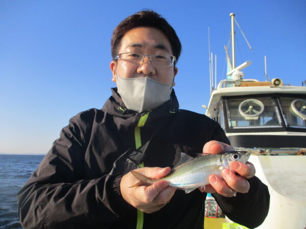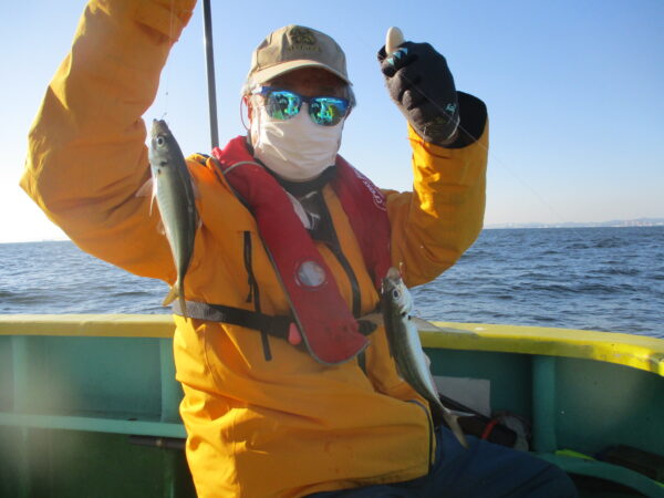 ※北東風が少しあり、波もあったので風影の場所で釣りました。朝イチからポツポツと皆さんに良い感じで釣れていました。風が強さを増したので、波の少ない所に移動して、ここでもアジの喰いは好調で皆さんに釣れていました。