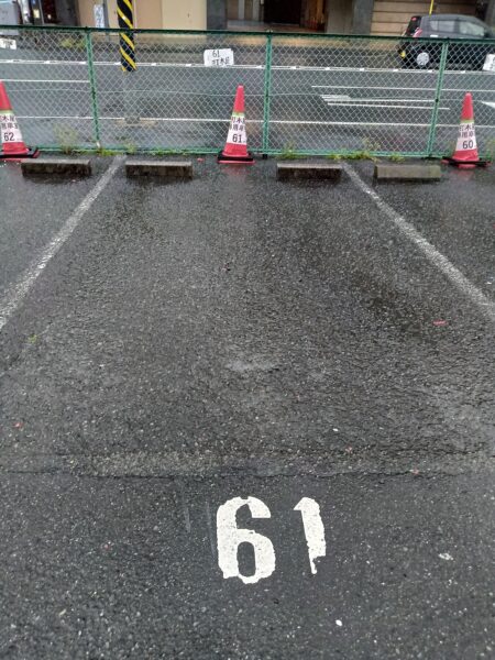 ◆第1駐車場に三角コーンを立てます◆