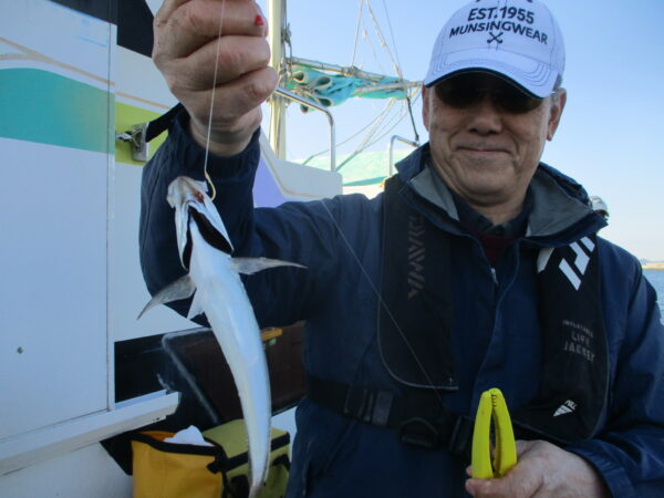 ※北風が強く、風影になる所で釣りました。風で釣りづらかったですが、ポツポツと釣れていました。一時、風が強さを増して波も大きくなり、船酔いの方も出ていましたので、波の少ない所に移動して、ポツリ、ポツリと釣れていました。