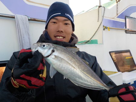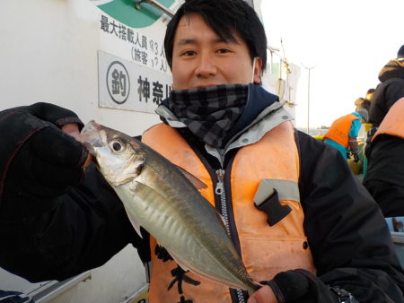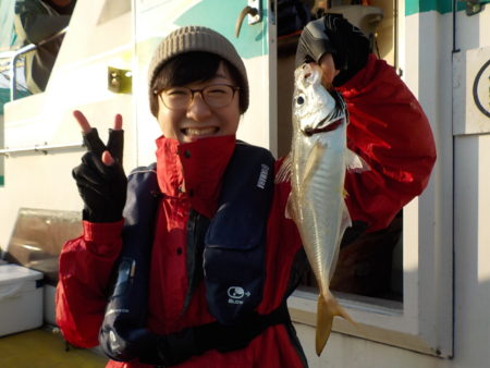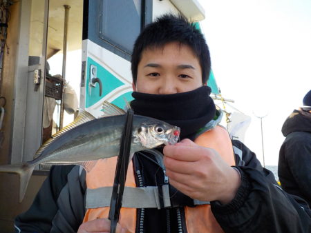 *朝のうちは冷たい風の凪でしたが、お日様が出てくると段々と暖かくなって釣りが出来ました。アジの喰いはポツリ、ポツリと釣れて来る感じで盛り上がりに欠けるアジの喰いでしたね。慣れた人でも置き竿にしてる人は厳しかったですね。竿を持って誘いを入れないとアジが喰い付いてくれなかったですね。