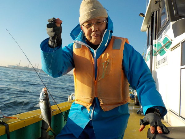※北風の凪で暖かな釣リ日和になりました。釣り始めは、ポツポツの喰いでしたが、段々とアジの喰いが良くなり皆さんに良い感じで釣れていました。他にサバも混じり、暖かい日差しの中、皆さんに釣れて好漁になりました。