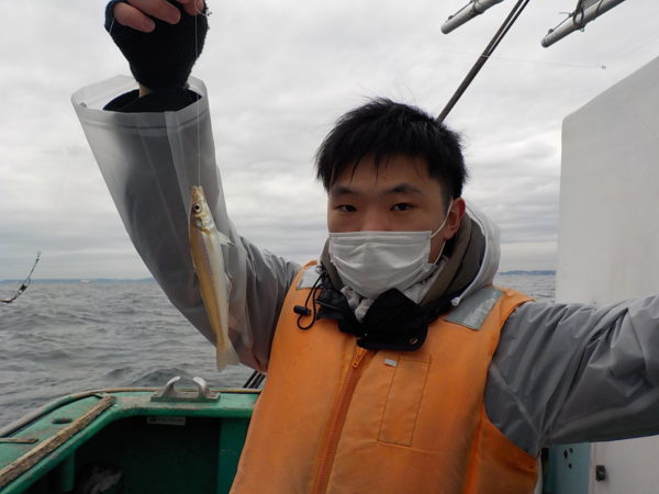 ※中ノ瀬を釣リました。釣り始めからポツポツと釣れていました。キスが、かたまっている場所に入ると3、4人同時に釣れたりする時もあり、皆さんに釣れていました。その他イシモチ、ホウボウ、小タイが混じりました。競技用キス針など小さい針は、寒いと餌付けが指が動きづらく面倒なので、針は8号~9号ぐらいの大き目がおススメです。