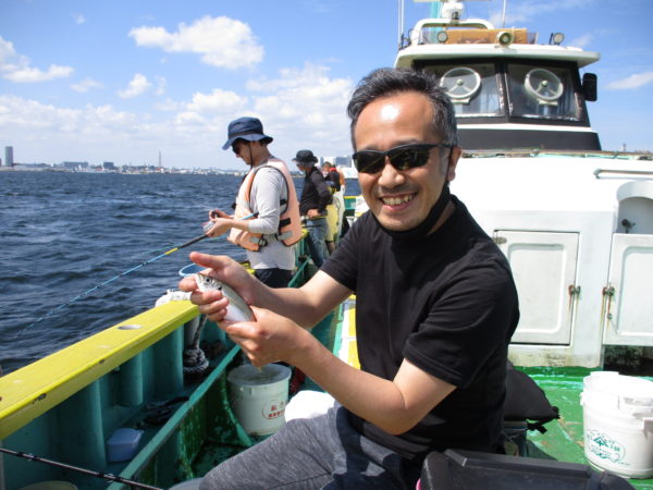 ※午後も横浜沖を釣りました。釣り始めはアジの喰いは渋く、なかなかアジが釣れて来てくれ無いでいましたが、それでも少し釣りを続けていると、アジの型が出始めて来るとポツリ、ポツリと誰かしらにアジが釣れ出してくれました。後半は、アジの群れが良くなり、ポツポツと良い感じで皆さんに釣れて来てくれて帰りまで好調なアジの喰いをしてくれました。