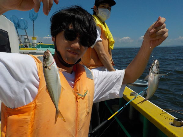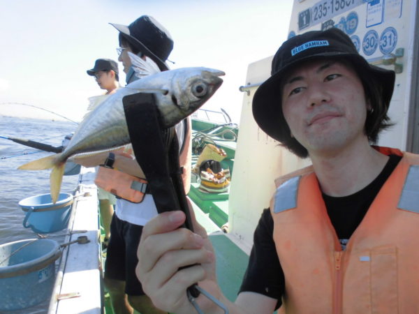 ※午後も横浜沖を釣りました。午後もアジの喰いは好調で皆さんにポツポツと良い感じでアジが釣れて来てくれていました。暑いのか少しアジが釣れて来ると休み休み釣る様になり、少し早めに沖上がりしてきました。