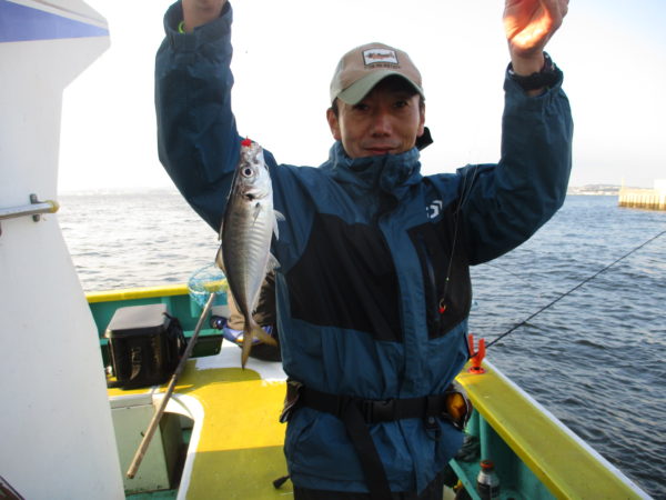 ※横浜沖を釣りました。朝のうちは風も無く凪で釣りが出来ていましたが、次第に北東の風から東の風に廻って来ていて、海が少しポチャ、ポチャして釣り難い感じでは有りましたが、アジは、ポツポツと釣れて来てくれてくれました。下げ潮のうちは波も無くアジが、ポツポツと釣れて来てくれていました。上げ潮になると風も東に廻って来て、潮と風が逆ですので、ポチャ、ポチャし出して船酔いされる人も出ていました。アジは好調に釣れて来てくれいました。他にトロサバも混じって釣れていました。