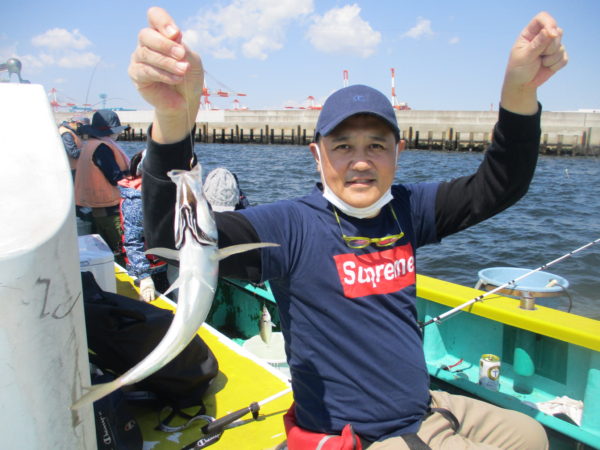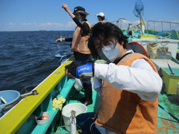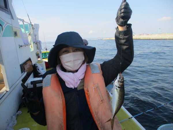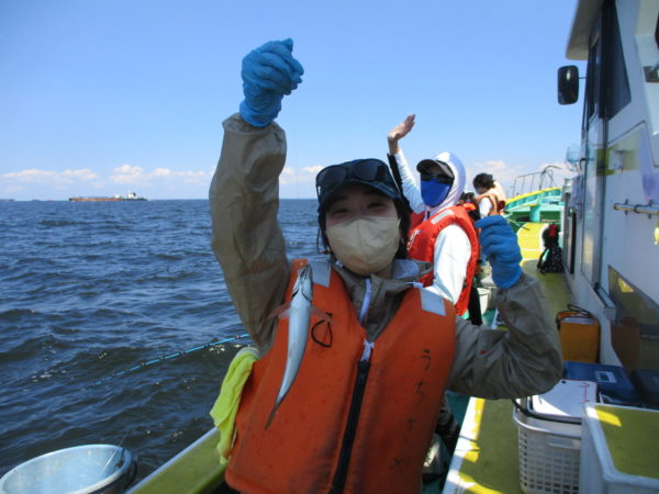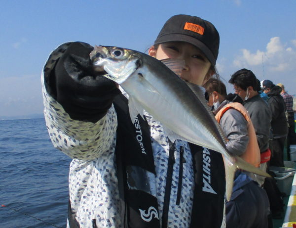 ※午後からも良いお天気で釣りが出来ました。慣れない方が多く、コツをつかむまでなかなか釣れてきませんでしたが、釣り方がわかってくると皆さん釣れていました。船酔いの方が釣りをしませんでしたが、他の方はアジを釣っていました。ソゲが2枚混じりました。