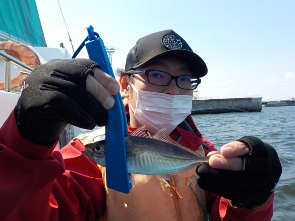 ※横浜沖を釣りました。2隻に分かれて釣りました。釣り始めはポツリ、ポツリのアジの喰いでしたが、次第に皆さんに型の良いアジ混じりで釣れていました。喰いが渋い時間帯も有りましたが、釣れ出すと皆さんにパラパラと釣れていました。