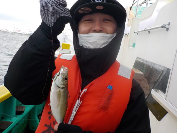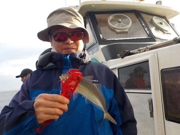 ※横浜沖を釣りました。今日は南西の風が吹いていました。朝の内はまだ、強く吹いて来ていませんでしたので、場所まで行けました。ポツポツと皆さんに釣れて良かったです。風は段々と強くなってきましたが、風陰で釣れていたので、皆さん何とか釣りが出来ました。