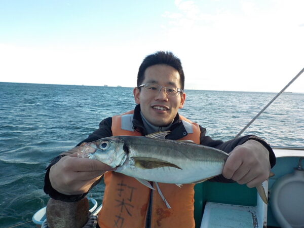 ※横浜沖を釣りました。南西の風が吹いていました。風かげの場所で釣りました。ポツポツと小ぶりのアジと型の良いアジが混じって、皆さんに釣れていました。