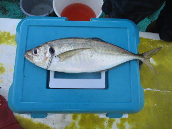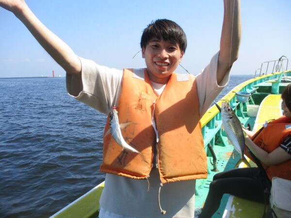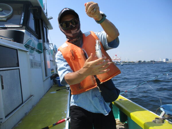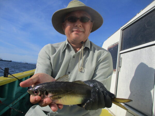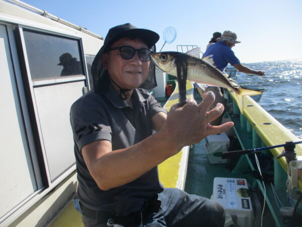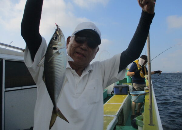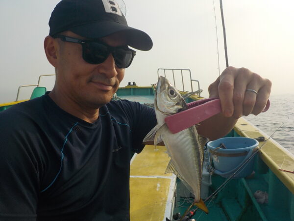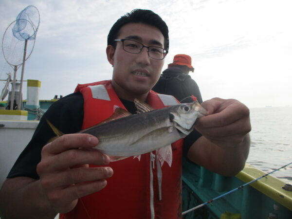 ※横浜沖を釣りました。雨水の上っ潮も少なくなり、アジはポツリ、ポツリと皆さんに釣れていました。