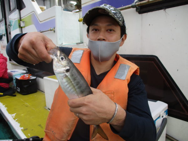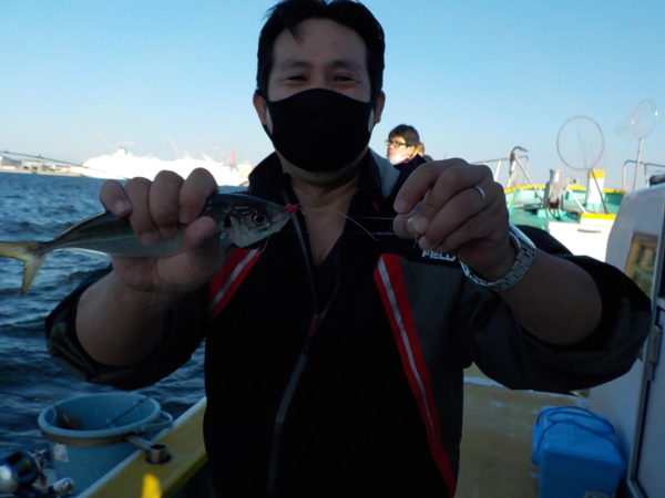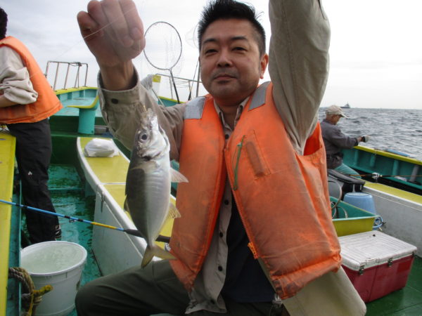 ※朝から雨が降っていました。風は北西の風でしたので、風の影になり、波は無く釣りが出来ました。本牧の下根周りで型の良いアジが釣れて来てくれてぽつぽつと皆さんに釣れてくれました。シケ前なのか、アジの喰いは良かったですね。型の良いアジが多く釣れて来てくれました。