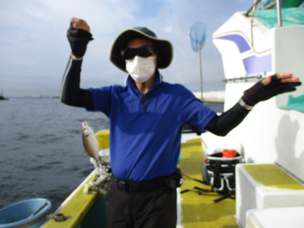 ※今日は落ち着いた良いお天気になりました。本牧沖を狙い、朝の釣り始めにポツポツと良い感じで中アジが主に良く釣れて来てくれていました。残根ながら、1時間ぐらいでアジの喰いが渋くなり、その後は、ポツリ、ポツリのアジの喰いでした。