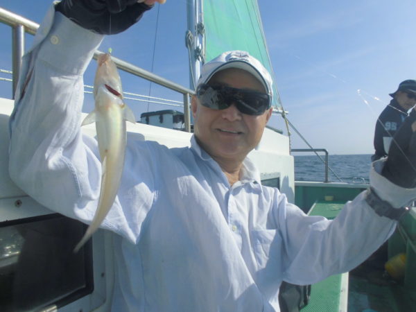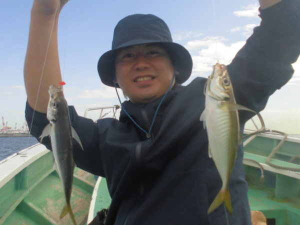 ※横浜沖を狙いました。釣り始めのうちはアジの喰いもポツリ、ポツリの感じで釣れていましたが、後半になるとアジの喰いは活発になり帰る頃には入れ食いでアジが釣れて来てくれていました。