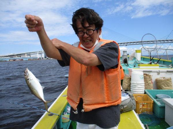 ※今日も南風が少し吹いていましたので少しは涼しく感じられていましたが、日差しは強いので日焼けや熱中症にご注意ください。アジは釣り始めからポツポツと良い感じで皆さんに釣れて来てくれて良くアジが釣れて来てくれていました。中アジと小アジの混じりで皆さんに釣れて来てくれて良ったです。