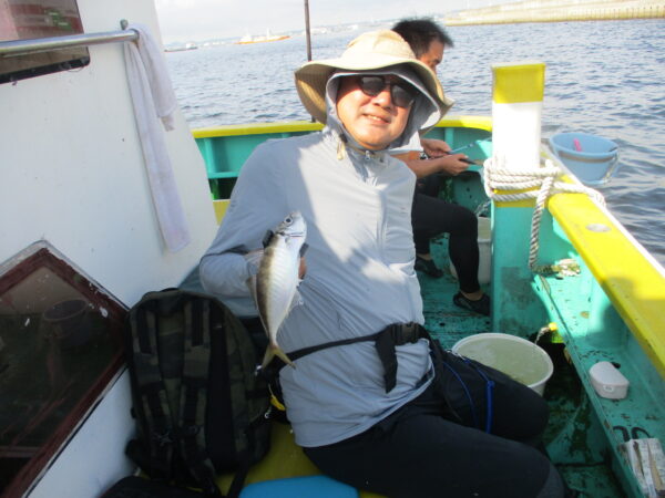 ※横浜沖を釣りました。釣り始めはポツリ、ポツリとアジが釣れて来る感じでした。15時過ぎ頃からアジの喰いが良くなり、ポツポツと皆さんに釣れて来てくれて、帰り頃になるとアジの喰いは活発になり、入れ食いで皆さんに釣れて来てくれていました。船酔いされた人が5尾でしたね、他の人達は、帰り頃に良くアジを釣り上げていました。