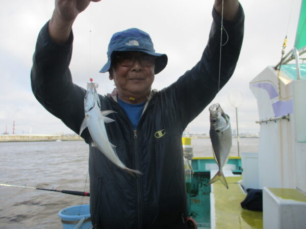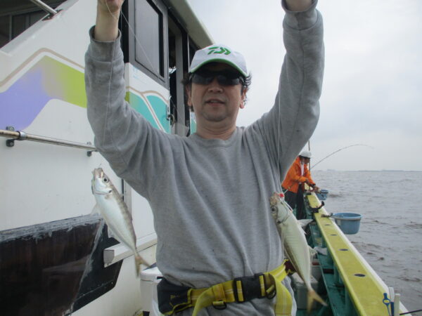 ※午後も横浜沖を釣りました。釣り始めはポツリ、ポツリとアジが釣れて来る感じでした。少ししていっとき、アジの食いがポツポツと皆さんに釣れて来てくれて、2尾掛けなども見られてアジが釣れていましたが、横から潮が流れてくると、アジの食いは、渋くなって来ていました。