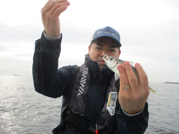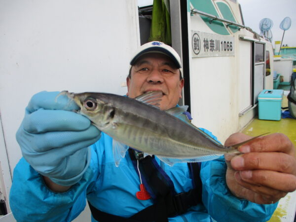 ※横浜沖を釣りました。北東の風が少し強く吹いていましたので、波の少ない所で釣りました。アジはポツリ、ポツリとイシモチ混じりで釣れて来てくれていました。少ししてからアジの喰いは活発になり、良くアジが皆さんに釣れて来てくれて、帰りまで良い感じでアジが皆さんに釣れて来てくれていました。船酔いと寒さで8尾で、小さい子供さんが、船窒に入って出てこれませんでした。