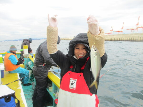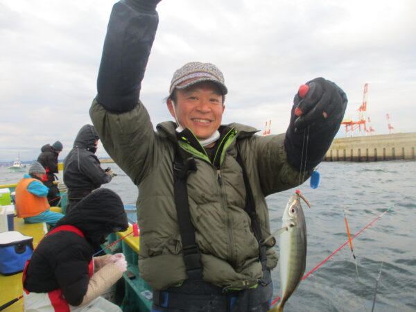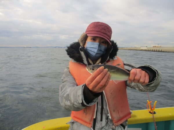 ※横浜沖を釣りました。北風が強く吹いていました。風の陰で釣りができました。朝の釣り初めは、潮が無くアジの喰いも悪かったです。